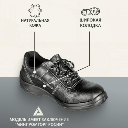 Полуботинки рабочие Профи 53 ПУ натуральная кожа черные размер 38. Рекомендуются для использования в нефтегазовом комплексе, сельском хозяйстве, строительной отрасли, металлургии, химической промышленности, а также для работы на открытом воздухе и в производственных помещениях.Верх обуви выполнен из натуральной кожи толщиной 2,0-2,2 мм. Мягкий кант и широкая колодка обеспечивают комфорт при носке. Термопластичный подносок для дополнительной защиты. Подошва из однослойного полиуретана с литьевым методом крепления, маслобензиностойкая.Стелька стандартной полноты из нетканого материала. Обувь должна быть выдана по размеру и полноте. После работы обувь нужно очищать от загрязнений, не повреждая материал, и проветривать в помещении. Не рекомендуется чистить обувь органическими растворителями. Регулярно смазывать обувной кремом.Гарантийный срок носки - 70 дней с даты выдачи в эксплуатацию. Обувь предназначена для защиты от общих производственных загрязнений и механических повреждений, от ударов, от нефти и нефтепродуктов. Соответствует стандартам ГОСТ 12.4.137-2001, ГОСТ 28507-99, ТР ТС 019/2011.Цвет на изображении товара может отличаться от оригинала из-за особенностей цветопередачи монитора. Законодательные и технические документы