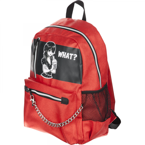 Молодежный рюкзак Комус Класс Аниме Готик подходит для девушек. Рюкзак без наполнения. Практичный вместительный рюкзак с одним просторным отделением на двухсторонней молнии. Снаружи один объемный пришивной карман на молнии. Имеет ручку, регулируемые мягкие плечевые лямки для комфортной посадки. Предназначен для учащихся средних и старших классов, а также для студентов. Размер изделия - 260x150x400 мм. Материал изделия: экокожа. Страна производитель: Россия. Цвет: красный.