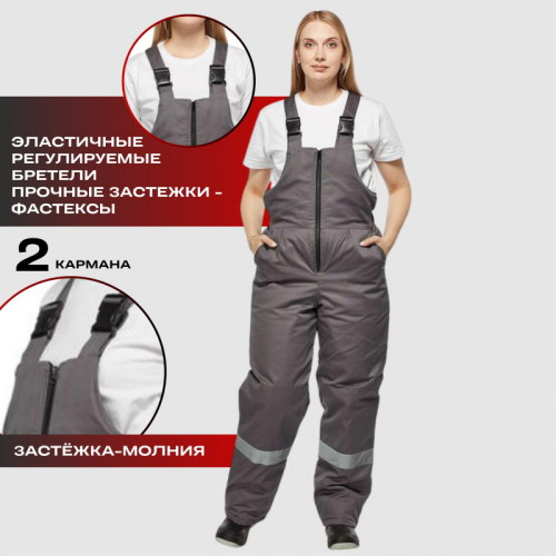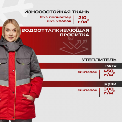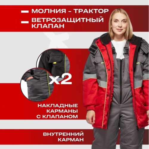Костюм рабочий зимний женский з43-КПК сер/красн (р.64-66) 158-164 (серия З)