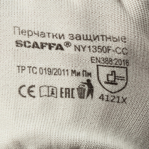 Перчатки защитные Scaffa Прогресс NY1350F-CC трикотажные с нитриловым покрытием серые/черные (15 класс, размер 11, XXL). Предназначены для использования в различных отраслях, таких как промышленность, логистика, склады, пищевые производства, общественное питание, лаборатории, сельское хозяйство, садовые работы, строительство, ремонт, электроэнергетика и сфера услуг. Перчатки подходят для работы в сухих, влажных и масляных условиях рабочей среды.Перчатки выполнены из трикотажа Coolmax с мембраной. Технология волокон Coolmax обеспечивает высокую гибкость и отличную воздухопроницаемость, что способствует комфорту в течение всего дня. Ладонь покрыта вспененным нитрилом, что обеспечивает отличное сцепление в влажной и масляной среде. Манжеты с удлиненным напульсником имеют цветовую индикацию размера.Размер: 11, XXL. Класс вязки: 15. Вес: 50 г. Количество в упаковке: 1 штука. Количество упаковок в транспортном коробе: 120 штук.Перчатки соответствуют стандартам: ТР ТС 019/2011, ГОСТ 12.4.183-91, ГОСТ 12.4.252-2013, ГОСТ EN 388-2016, ГОСТ P EN 1149-5-2008. Эксплуатационный уровень: EN 388-4121X.Особенности: отличная стойкость к истиранию, повышенный комфорт за счет отвода тепла, возможность стирки в стиральной машине. Цвет на изображении товара в интернет-магазине или в печатном каталоге может отличаться от оригинала из-за особенностей цветопередачи монитора.ЗАКОНОДАТЕЛЬНЫЕ И ТЕХНИЧЕСКИЕ ДОКУМЕНТЫ:
