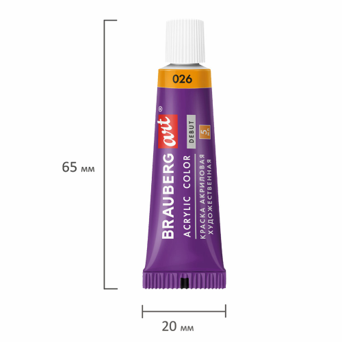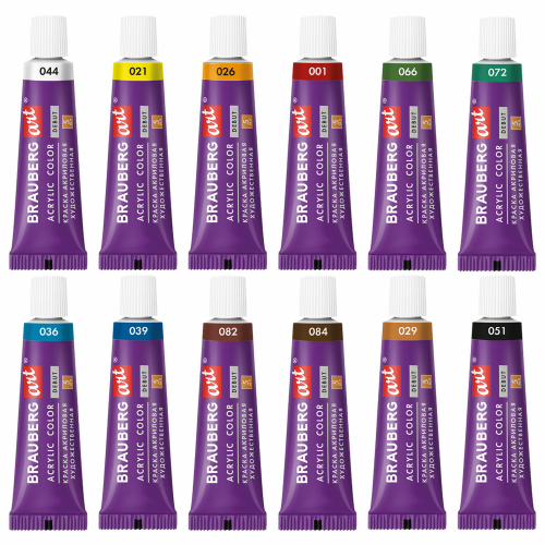 Краски акриловые художественные НАБОР 12 цветов по 5 мл, в тубах, BRAUBERG ART DEBUT, 192385