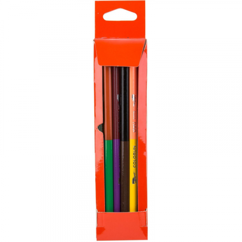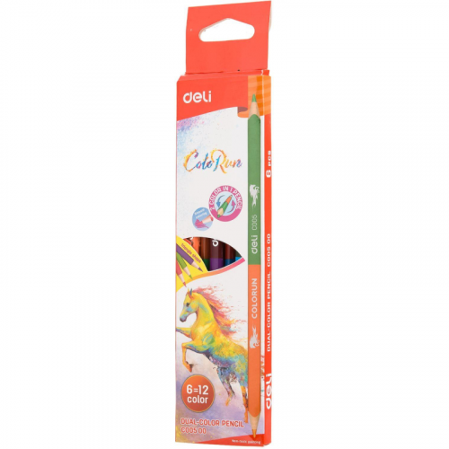 Карандаши цветные Deli ColoRun 6 карандашей 12 цветов трёхгранные (двусторонние) Цветные карандаши двусторонние Deli ColoRun предназначены для эффектных скетчей и иллюстраций. Применяются в школе, дома и путешествиях. Рекомендованный возраст от 3 лет. Набор содержит 12 цветов. Материал корпуса - древесина. Корпус трёхгранный, диаметр: 7 мм. Длина корпуса: 175 мм. Диаметр грифеля: 2.9 мм. Грифель разноцветный. Карандаши заточены. Форма корпуса обеспечивает удобство захвата. Упакованы в картонную коробку с европодвесом. Размер упаковки 50x10x180 мм.