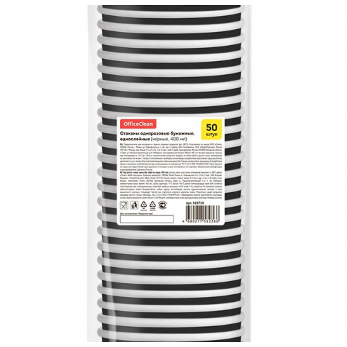 Стаканы одноразовые OfficeClean 400мл, набор 50шт., бумажные однослойные, черные, хол/гор