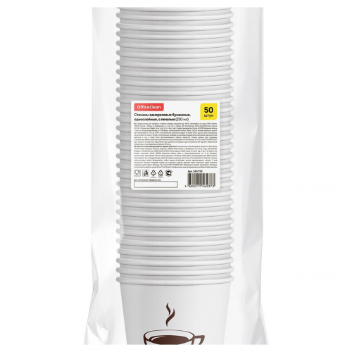 Одноразовые стаканы OfficeClean предназначены для офисных столовых, образовательных и производственных учреждений, предприятий общественного питания, которые реализуют горячие и холодные напитки навынос. В наборе представлено 50 штук. Стаканы объёмом 250 мл изготовлены из ламинированной бумаги.