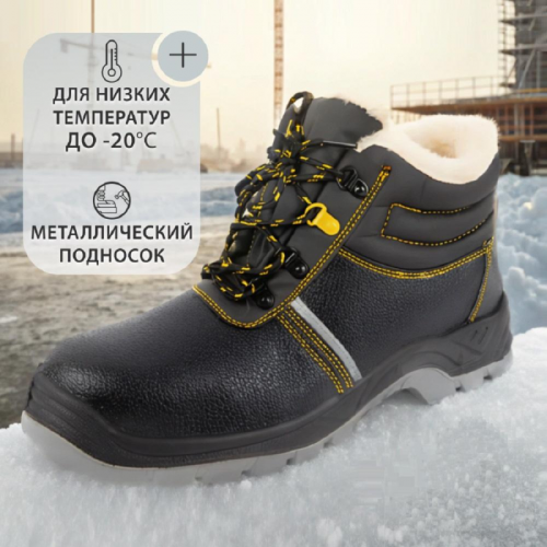 Ботинки рабочие утепленные модели Лайн подойдут и для мужчин, и для женщин. Выполнены в чёрном цвете. Размер 40. Обувь предназначена для работы в нефтегазовой, горнодобывающей, энергетической, химической промышленности, на транспорте, в агропромышленном комплексе и сервисных службах. Защитные ботинки изготовлены из микрофибры или искусственной кожи (MF кожа). Представляет собой материал из полиэстеровых волокон, вплетаемых в тканевое основание. Несмотря на синтетическое происхождение, материал по своим характеристикам не уступает натуральным, а иногда и превосходит их: микрофибра воздухо- и паропроницаема. Со специальным покрытием для защиты от ОПЗ, МВ, МВО. Утеплитель серого цвета и выполнен из искусственного меха. Ботинки оснащены металлоподносками, предохраняющими ноги от удара. Застежка на шнурок и металлические петли. Подошва двухслойная: полиуретан и термополиуретан (ПУ-ТПУ). Основной, полиуретановый слой обеспечивает эластичность подошвы и уменьшает вес обуви для комфортного использования. Термополиуретановый слой обладает гибкостью и прочностью. Литьевой метод крепления подошвы обеспечивает с верхом обуви единое целое, в результате достигается полная герметичность в месте литья. Такой метод крепления является самым прочным и долговечным. Мягкий кант обеспечивает комфортное облегание и боковую поддержку, защищает от возможных боковых ударов, препятствует проникновению грязи и пыли внутрь обуви. Верх ботинка имеет контрастные отделочно-скрепляющие строчки желтого цвета. Антипрокольная стелька, дополнительно защищает стопы ног от проколов, порезов, сильных ударов и прочих производственных травм. Колодка обладает полнотно-размерными характеристиками защитной обуви, предназначенной для эксплуатации в зимний и весенне-осенний периоды, дает возможность работать полный рабочий день с комфортом и без усталости. Предназначена модель для защиты от механических повреждений, пониженных температур, а также от проколов и ударов. Соответствуют стандартам: ГОСТ 12.4.177-89, ТР ТС 019/2011.