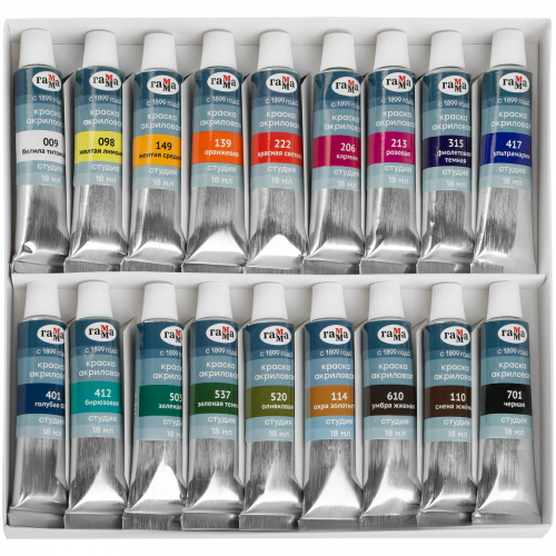 Краски акриловые художественные Гамма "Студия", 18цв., 18 мл/туба, картон. упаковка