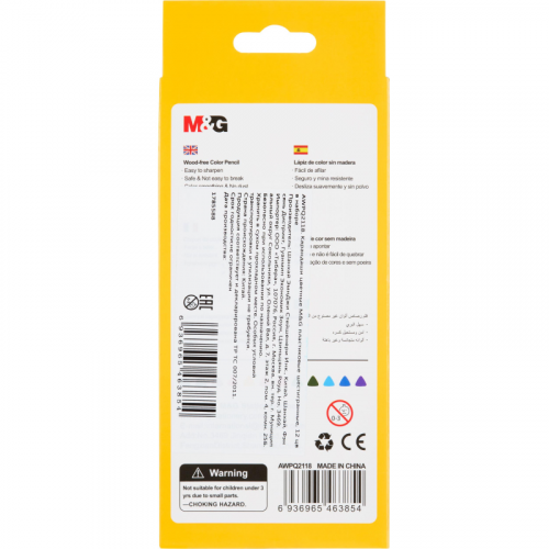 Карандаши цветные M&G  пластиковые шестигранные, 12 цв в наборе