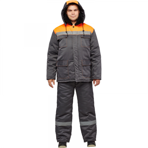 Костюм рабочий зимний мужской з35-КПК с СОП серый/оранжевый (размер 60-62, рост 194-200). Рекомендована для использования в легкой промышленности, строительстве, ЖКХ, автомобильной промышленности. Состав ткани: 80% полиэстер, 20% хлопок. Ткань с водоотталкивающей пропиткой/отделкой. Плотность ткани: 190 г/кв.м. Утеплитель: синтепон, плотностью 360 г/кв.м (основа) 3 слоя по 120 г/кв.м и 240 г/кв.м (руки/ноги) 2 слоя по 120 г/кв.м. Технология изготовления термоскрепленного синтепона (евросинтепона) позволяет использовать данный утеплитель для создания более тонких изделий с сохранением термозащитных свойств. Важными преимуществами утеплителя являются легкость и хорошая пластичность, что улучшает подвижность в костюме. А также исключение миграции волокна через ткани верха и подкладки за счет скрепления слоев. Защитные свойства: -Защищает от общих производственных загрязнений. -Защищает от пониженных температур. Костюм состоит из куртки и полукомбинезон. Куртка прямого силуэта, удлиненная, с центральной супатной застежкой на 5 петель-пуговиц. Со съемным капюшоном, пристегивающийся на 3 петли-пуговицы. Меховой воротник. Кокетка оранжевого цвета и наличие СОП ленты 5 см. Наличие двух нагрудных и двух нижних накладных карманов с клапанами. Карманы отстрочены двойной контрастной строчкой. Наличие трикотажного манжета. Нижняя часть обработана швом в подгибку. Полукомбинезон прямого силуэта с центральной застежкой на молнию. Два кармана с косым входом, по линии талии располагается резинка. Бретели регулируются при помощи пряжек фастексов. Коллекция зимней спецодежды з35 представлена комплектами з35-КПК. Соответствует базовым характеристикам, заявленному ГОСТ 12.4.303-2016 и ТР ТС 019/2011. Длительность эксплуатации СИЗ зависит от правильного ношения, хранения, условий работы и норм выдачи, установленных в организации и на предприятии. Законодательные и технические документыЦвет на изображении товара в интернет-магазине или в печатном каталоге может отличаться от оригинала из-за особенностей цветопередачи монитора. Законодательные и технические документы
