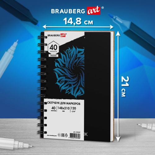 Скетчбук имеет размер 148х210 мм и содержит 40 каландрированных листов бумаги плотностью 120 г/м2. Данная бумага идеально подходит для рисования маркерами и фломастерами, не позволяя им просачиваться на следующий лист. Не "съедает" цвет, оставляя яркие цвета неизменными. Листы удобно скреплены спиралью, что позволяет переворачивать их на 360 градусов.