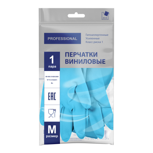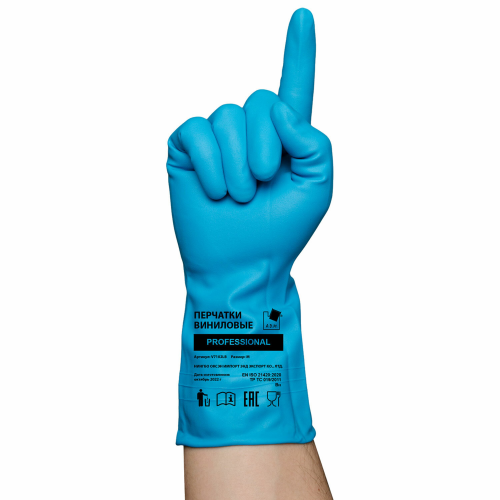 Перчатки виниловые ГОЛУБЫЕ усиленные ГИПОАЛЛЕРГЕННЫЕ, размер L (большой), 90 г, ТР ТС, PROFESSIONAL, ПРОЧНЫЕ, ADM, 31155