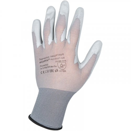 Перчатки рабочие защитные Scaffa Контакт нейлоновые с полиуретановым покрытием серые (18 класс, размер 7 (S)). Предназначены для защиты рук от механических повреждений при различных видах работ.Основа из нейлона (класс вязки 18) не снижает чувствительность рук и надежно защищает от механических повреждений. Полиуретановое покрытие обеспечивает надежный захват на сухих и влажных поверхностях. Удлиненный манжет защищает запястье и препятствует попаданию мусора и вредных веществ внутрь перчатки. Цвет напульсника позволяет легко определить размер изделия. Функция Touch Screen дает возможность пользоваться сенсорными экранами без снятия перчаток.Перчатки подходят для использования при строительных работах, а также при работе с режущим инструментом, стеклом и металлическими деталями с острыми или неровными краями. Они подходят для строительной и тяжелой промышленности.Защитные свойства перчаток соответствуют стандарту EN 388:2016 - 2110X:- Стойкость к истиранию: уровень 2 (не менее 500 циклов).- Стойкость к разрыву: уровень 1 (не менее 10 Н).- Стойкость к порезу: уровень 1 (индекс не менее 1,2).Перчатки соответствуют стандартам ГОСТ 12.4.183-91, ГОСТ 12.4.252-2013, ТР ТС 019/2011, ГОСТ EN 388-2016. Длина изделия - 220 мм. В упаковке 1 пара.ЗАКОНОДАТЕЛЬНЫЕ И ТЕХНИЧЕСКИЕ ДОКУМЕНТЫ: