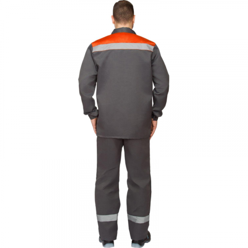 Костюм рабочий летний мужской л16-КПК с СОП серый/оранжевый (размер 48-50, рост 170-176) состоит из куртки и полукомбинезона. Изготовлен из смесовой ткани (80% полиэстер, 20% хлопок, плотность 190 г/кв.м.). Куртка и полукомбинезон оснащены светоотражающей полосой - 5 см. Полукомбинезон c накладными карманами, гульфиком на пуговицах, эластичной тесьмой по талии спинки и регулируемыми бретелями. Куртка прямого силуэта на пуговицах с контрастной кокеткой и тремя накладными карманами. Соответствует ГОСТ 12.4.280-2014, ТР ТС 019/2011. Сферы применения: сельское хозяйство, логистика, легкая промышленность, строительство, озеленение. Коллекция спецодежды л16 представлена комплектами куртка-брюки л16-КБР и куртка-полукомбинезон л16-КПК.