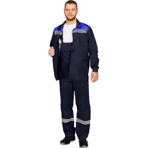 Костюм рабочий летний мужской Л16-КПК с СОП синий/васильковый (размер 48-50, рост 170-176) включает куртку и полукомбинезон. Он предназначен для использования в сельском хозяйстве, логистике, легкой промышленности, строительстве и озеленении. Костюм изготовлен из смесовой ткани (80% полиэстер, 20% хлопок), плотностью 190 г/кв.м. Куртка и полукомбинезон оснащены светоотражающей полосой шириной 5 см для обеспечения видимости в условиях низкой освещенности. Полукомбинезон имеет накладные карманы, гульфик на пуговицах, эластичную тесьму по талии и регулируемые бретели. Куртка прямого силуэта с контрастной кокеткой и тремя накладными карманами. Она застегивается на пуговицы. Защитные свойства: - Ми - защита от механических повреждений; - З - защита от загрязнений. Одежду рекомендуется стирать при температуре не выше 40 градусов. Не отбеливать, гладить при средней температуре. Костюм соответствует ГОСТ 12.4.280-2014 и ТР ТС 019/2011. Коллекция спецодежды Л16 включает куртку-брюки Л16-КБР и куртку-полукомбинезон Л16-КПК. размер В связи с особенностями технологии выкраса ткани в изделии могут наблюдаться различия в цвете отдельных элементов. Цвет на изображении товара в интернет-магазине или в печатном каталоге может отличаться от оригинала из-за особенностей цветопередачи монитора. Законодательные и технические документы