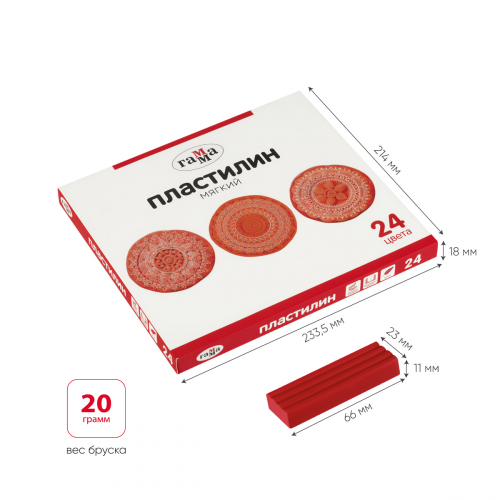 Пластилин ГАММА великолепно разминается, не липнет и не окрашивает руки, не крошится. Детали из пластилина легко склеиваются друг с другом. Цвета насыщенные, яркие и легко смешиваются, что позволяет получать любые оттенки. Предназначен для изготовления поделок и аппликаций из пластилина, разработан с учетом рекомендаций педагогов. Стек в наборе.