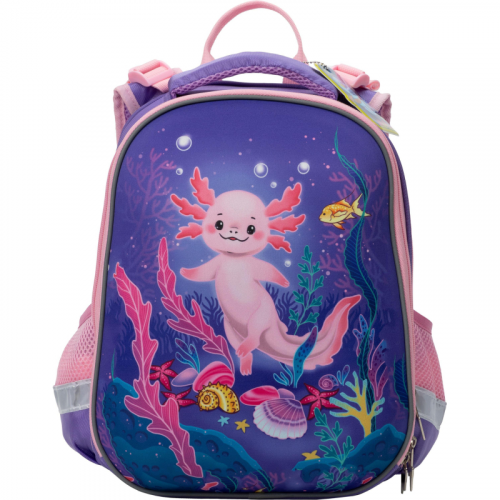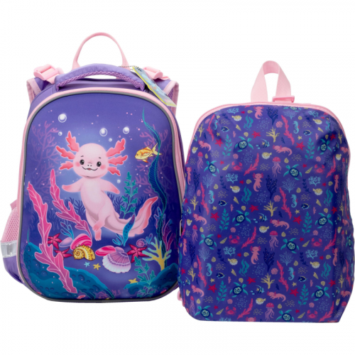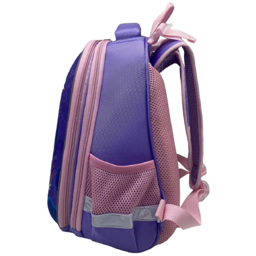 Школьный ранец с дизайном Комус Класс для девочек младших классов с удобным пристегивающимся мешком. Ранец имеет обтекаемую эргономичную форму и жесткий каркас. Удобен за счет анатомической спинки из дышащего материала. Ранец выполнен из полиэстера. Имеет два вмесительных отделения на молнии. В основном отделении - гибкая перегородка, предназначенная для удобного хранения книг и тетрадей, во втором - сетчатый карман и карман-органайзер. Ранец оснащен двумя ручками: одна узкая, чтобы вешать на парту, вторая широкая и мягкая, чтобы удобно носить в руке. Широкие удобные лямки из воздухообменного сетчатого материала регулируются по длине и по спинке ранца - удобно подогнать под рост ребенка, что позволяет добиться наиболее комфортного расположения ранца на спине. Благодаря устойчивому плотному дну, которое держит форму, ранцем удобно пользоваться и ставить около парты, ранец не падает. Боковые карманы-сеточки для бутылки и прочих аксессуаров. Для безопасности ребенка в темное время суток предусмотрены светоотражатели на передней части ранца, на лямках и над боковыми карманами. Особенности: пристегивающийся мешок из полиэстера на молнии, который легко крепится к ранцу и фиксируется за счет регулируемых лямок. Мешок можно носить отдельно на спине, как ранец, либо в руках, для чего предназначена удобная для преноски ручка. Размер: 350x255x135 мм. Базовый цвет: фиолетовый. Объем: 12 л. Вес: 0, 864 кг.