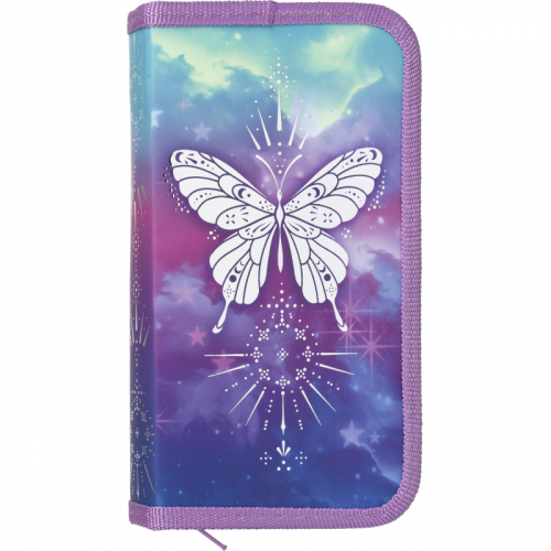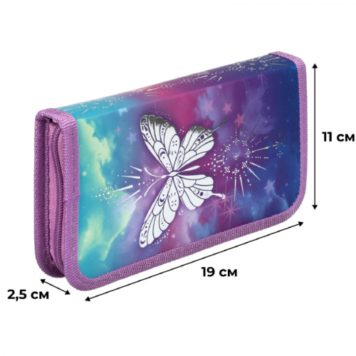 Пенал Комус Класс Волшебная бабочка - эргономичный контейнер из материала софт-тач. Используется для хранения и транспортировки канцелярских принадлежностей. Дизайн пенала выполнен в фиолетовом цвете с изображением бабочки. Предназначается для учениц дошкольных и младших классов. Пенал размером 190x25x110 миллиметров имеет форму 'книжки', что придает ему особою компактность. В него с легкостью поместятся все необходимые для обучения инструменты. При этом они получат надежное хранение и будут всегда под рукой! Пенал идет в продажу без дополнительного наполнения. В рамках ребрендинга производится перевод данного артикула с ТМ №1School на ТМ Комус Класс с сохранением всех потребительских характеристик товара. На переходный период допускается поставка данной продукции в двух вариантах дизайна.