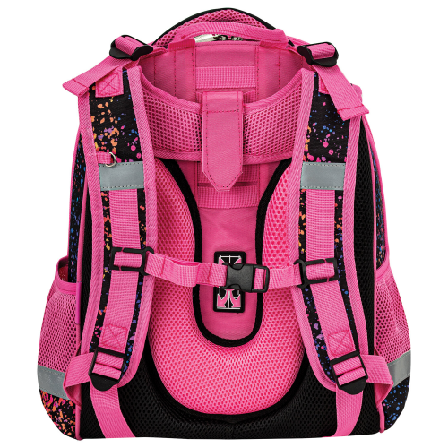 Удобная мягкая вентилируемая спинка с воздушными спонжевыми панелями разработана с учетом анатомических особенностей детей младшего школьного возраста. При правильной регулировке ранец будет практически не ощущаться на плечах и не будет доставлять дискомфорт при носке. В процессе эксплуатации равномерное распределение нагрузки позволит сохранить правильную осанку!
