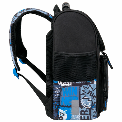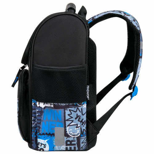 Светоотражающие элементы ранца расположены спереди на переднем кармане, на торцах и на лямках, также дополнительно верхняя крышка прошита специальной светоотражающей лентой. Это необходимо для безопасности ребёнка в темное время суток.