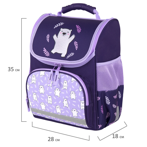 Светоотражающие элементы ранца расположены спереди на переднем кармане, на торцах и на лямках, также дополнительно верхняя крышка прошита специальной светоотражающей лентой. Это необходимо для безопасности ребёнка в темное время суток.