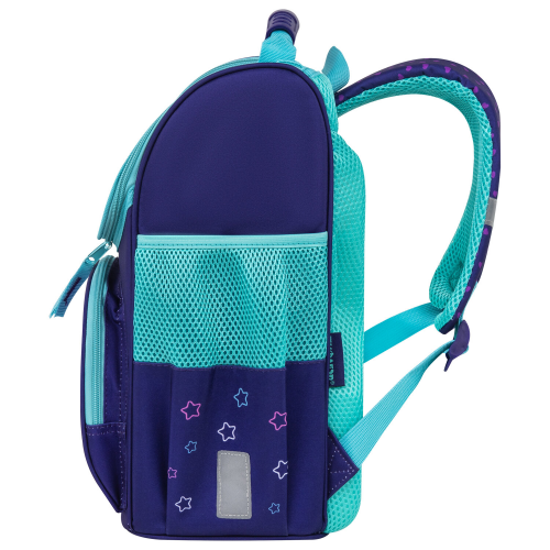 Светоотражающие элементы ранца расположены спереди на переднем кармане, на торцах и на лямках, также дополнительно верхняя крышка прошита специальной светоотражающей лентой. Это необходимо для безопасности ребёнка в темное время суток.