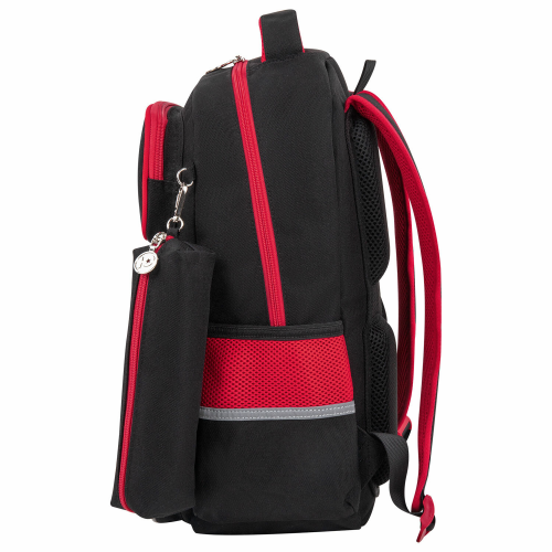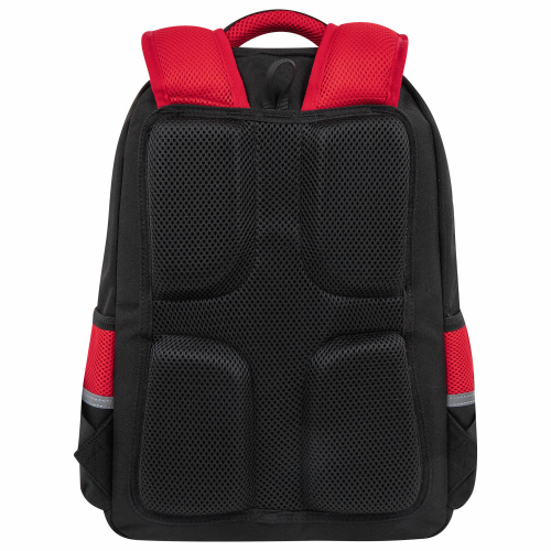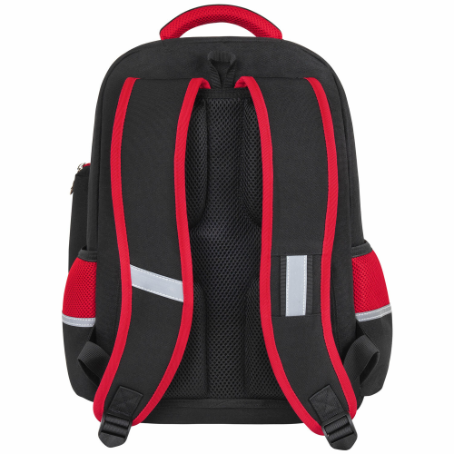 Рюкзак снабжен усиленной ручкой из ткани и петелькой для подвешивания на крючок, а также фиксатором для тетрадей. Светоотражающие элементы с четырех сторон обеспечивают безопасность в темное время суток.
