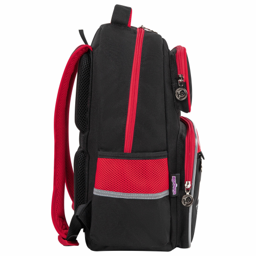 Рюкзак с формоустойчивой вентилируемой спинкой имеет 1 вместительное отделение на молнии и 5 карманов. Оптимальный размер рюкзака позволяет вместить все необходимые школьные принадлежности. Мягкие широкие регулируемые лямки способствуют оптимальному распределению веса.