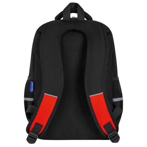 В основном отделении рюкзака можно легко и быстро разместить учебники и тетради формата А4+, а также воспользоваться прижимными разделителями. Спереди рюкзака располагаются два больших кармана на молнии, которые вмещают тетради формата А5 и прочие канцелярские принадлежности, и небольшой карман для различных мелочей или телефона. Такая организация пространства позволит держать школьные принадлежности в сохранности и поможет приучить ребенка к порядку.