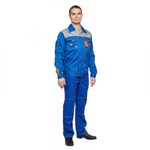 Костюм рабочий летний мужской модели л10-КБР выполнен в васильковом цвете с серыми и оранжевыми вставками. Размер 52-54, рост 158-164 см. Состоит из куртки и брюк. Изготовлен из смесовой ткани с отделкой ВО (65% полиэстер, 35% хлопок). Плотность ткани - 240 г/кв.м. За счет оптимального соотношения хлопка и полиэфирных волокон дают высокие эксплуатационные характеристики, не мнется, костюм держит свою первоначальную форму даже после многократных стирок, не требует глажки, износостойкий. Благодаря матовой поверхности ткани, одежда выглядит презентабельно и аккуратно. Куртка с застежкой на молнию и контактную ленту. Многофункциональные карманы, специальный карман для телефона, окошко для бейджика. На спине куртки складки для свободы движения. Рукава с усилительными налокотниками, защищающими от истирания. Ширина пояса куртки регулируется патой. Брюки с резинкой на поясе, многофункциональными карманами и усилительными наколенниками. Костюм обеспечивает защиту от общих производственных загрязнений, от механических повреждений (истирания). Рекомендована в использовании таких отраслял, как агропромышленный комплекс, ЖКХ, организации торговли, бытовое обслуживание, гостиничный сервис, сервисные службы, клининговые службы, медицинский персонал организаций здравоохранения. Соответствует стандартам ТР ТС 019/2011, ГОСТ 12.4.280-2014.