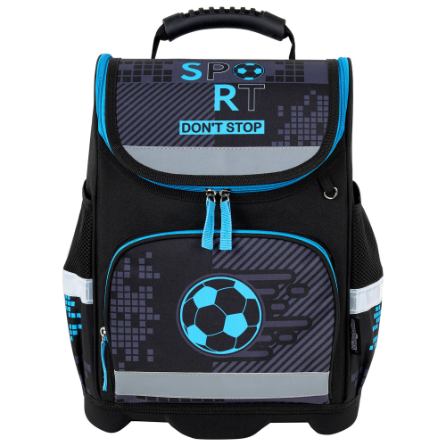 Жесткокаркасный ранец выполнен из прочного, износостойкого полиэстера. Ранец состоит из одного просторного отделения, одного переднего и двух боковых карманов.