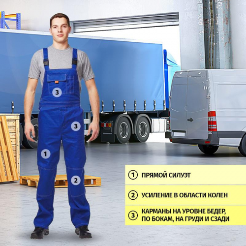 Костюм рабочий летний мужской модели л10-КПК выполнен в васильковом цвете с серыми и оранжевыми вставками. Размер 52-54, рост 170-176. Состоит куртки и полукомбинезона. Изготовлен из смесовой ткани с отделкой ВО (65% полиэстер, 35% хлопок). Плотность ткани- 240 г/кв.м. За счет оптимального соотношения хлопка и полиэфирных волокон дают высокие эксплуатационные характеристики, не мнется, костюм держит свою первоначальную форму даже после многократных стирок, не требует глажки, износостойкий. Благодаря матовой поверхности ткани, одежда выглядит презентабельно и аккуратно. Куртка с застежкой на молнию и контактную ленту. Многофункциональные карманы, специальный карман для телефона, окошко для бейджика. На спине куртки складки для свободы движения. Рукава с усилительными налокотниками, защищающими от истирания. Ширина пояса куртки регулируется патой. Полукомбинезон с многофункциональными карманами, с усилительными наколенниками. Бретели регулируются по длине. Костюм обеспечивает защиту от общих производственных загрязнений, от механических повреждений (истирания). Рекомендована в использовании таких отраслял, как агропромышленный комплекс, ЖКХ, организации торговли, бытовое обслуживание, гостиничный сервис, сервисные службы, клининговые службы, медицинский персонал организаций здравоохранения. Соответствует стандартам ТР ТС 019/2011, ГОСТ 12.4.280-2014.