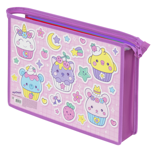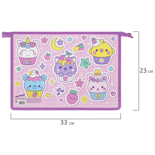 Папка для тетрадей ЮНЛАНДИЯ А4, 1 отделение, картон/пластик, конгрев, на молнии, "Sweets", 272133