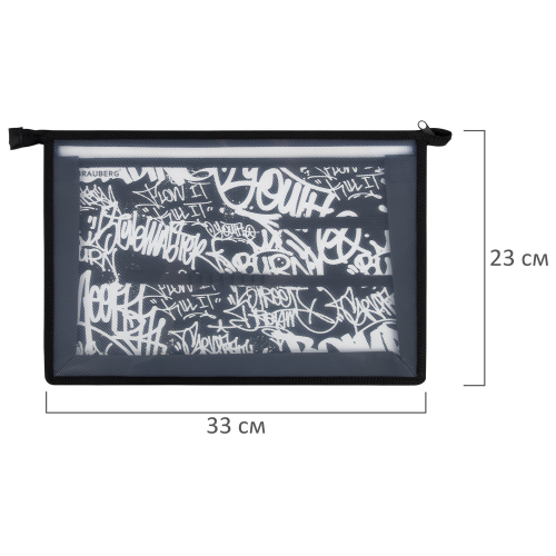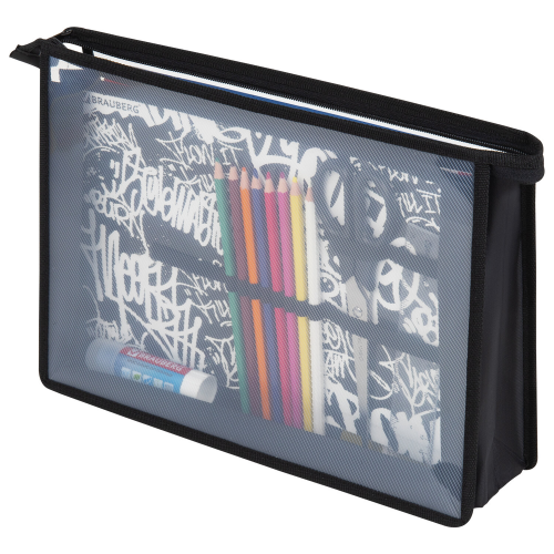 Папка для труда BRAUBERG А4, 2 отделения, пластик, молния сверху, органайзер, "Graffiti", 272215