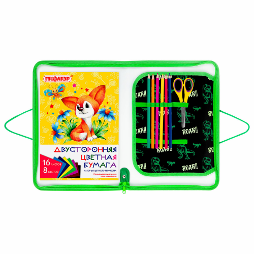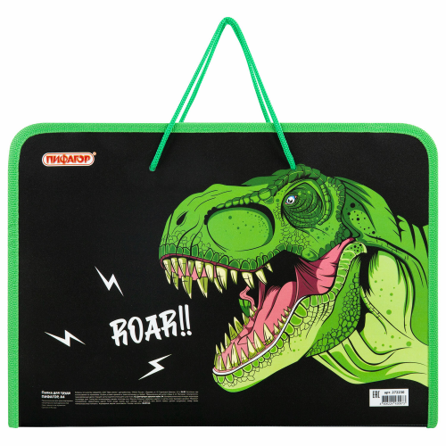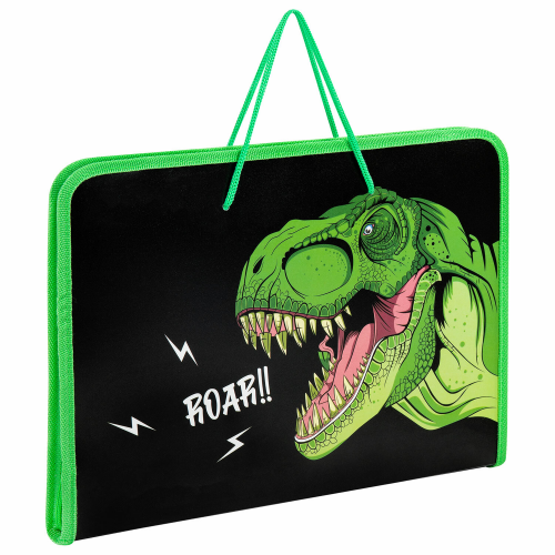 Папка для труда на молнии с ручками ПИФАГОР А4, 1 отделение, пластик, органайзер, "Dino roar", 272230