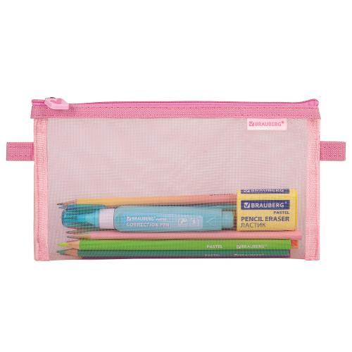 Пенал-конверт BRAUBERG, сетка, 22x10 см, розовый, 272238