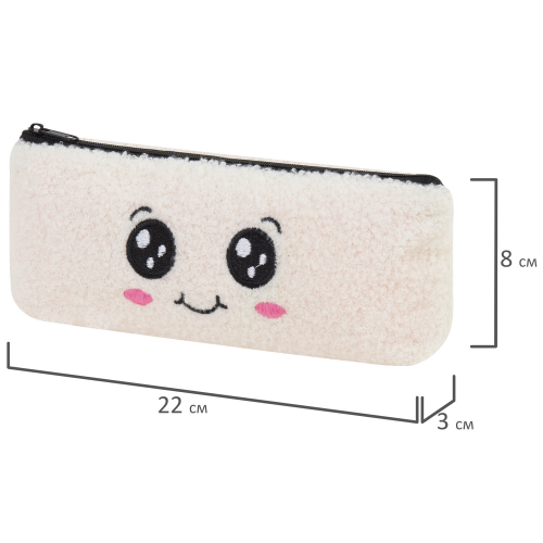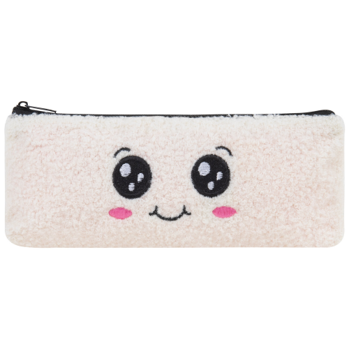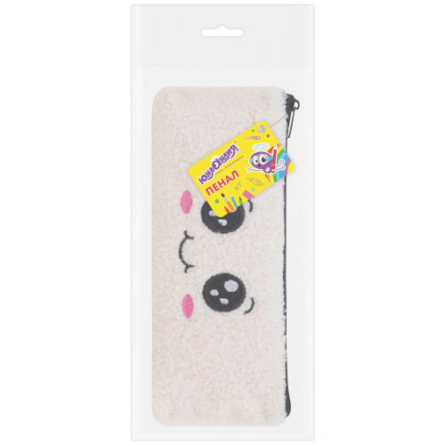 Пенал ЮНЛАНДИЯ, 1 отделение, плюш, Smiley face, белый, 22х8x5 см, 272269