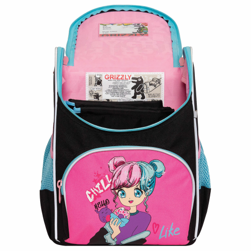 Ранец GRIZZLY анатомическая спинка, с мешком для обуви, для девочек, LIKE, 33х25х13 см, RAm-484-6/1