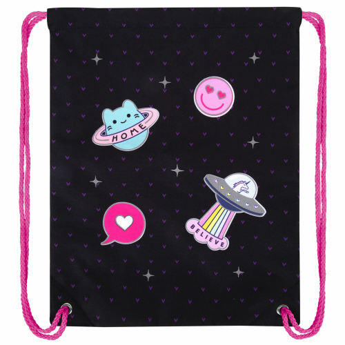 Мешок размером 43х33 см имеет одно вместительное отделение с износостойкой подкладкой внутри, а также боковой карман на молнии снаружи: для телефона, ключей и других мелочей. Наличие светоотражающих элементов в дизайне сумки повышает безопасность ребенка в темное время суток.