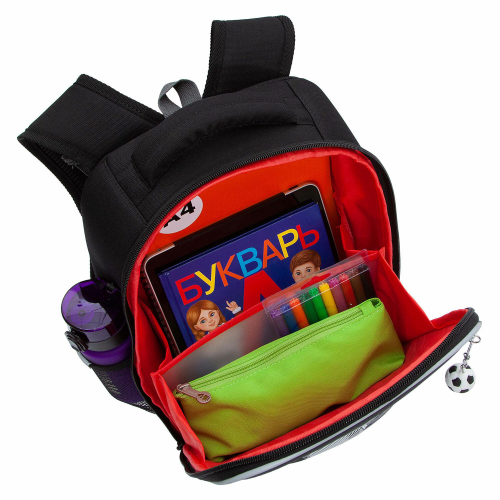 Анатомическая спинка, нагрудная стяжка со свистком и удобные лямки позволяют равномерно распределять нагрузку на спину и плечи. У рюкзака одно отделение из двух отсеков для пособий, книг, тетрадей формата А4. Имеются боковые карманы для бутылочки с водой и разных мелочей. Для безопасности в темное время суток со всех сторон ранца нанесены светоотражающие элементы. Материал рюкзака с водо- и грязеотталкивающей пропиткой.