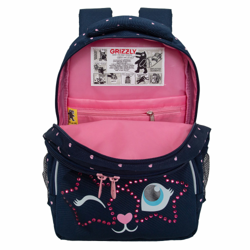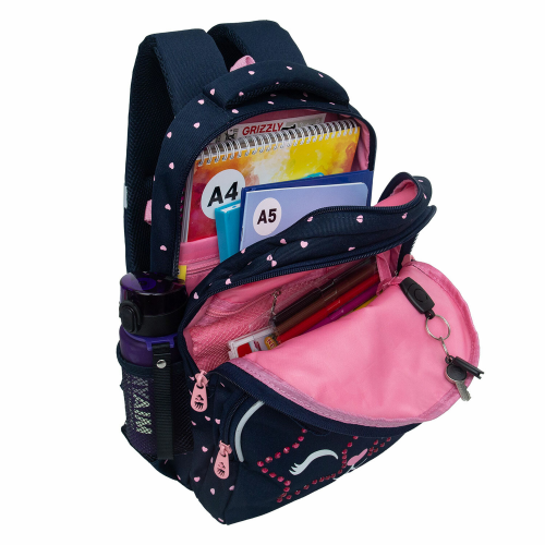 Рюкзак вместительный, имеется два больших отделения: одно для книг, документов и пособий формата А4, другое – для мелких принадлежностей. Много карманов внутри и снаружи, карман для ноутбука 13". Со всех сторон есть светоотражатели – ребенка в темноте точно заметят. А за счет водо- и грязеотталкивающей пропитки рюкзак долго остается как новый. Если он все же чем-то испачкался, рекомендуется ручная стирка в холодной воде.