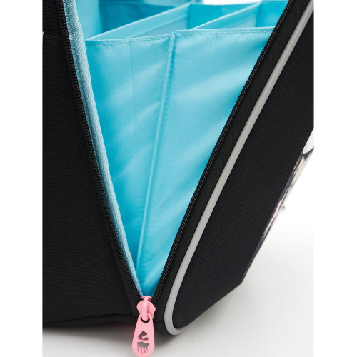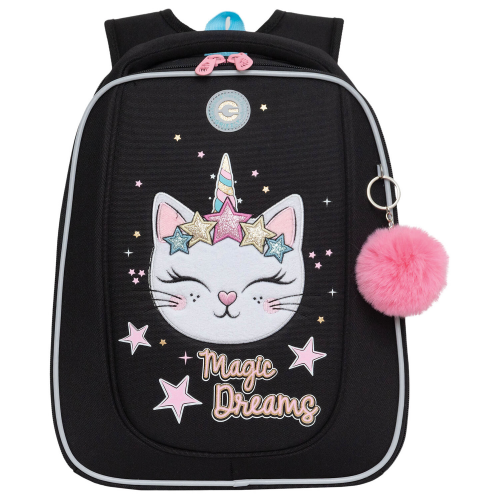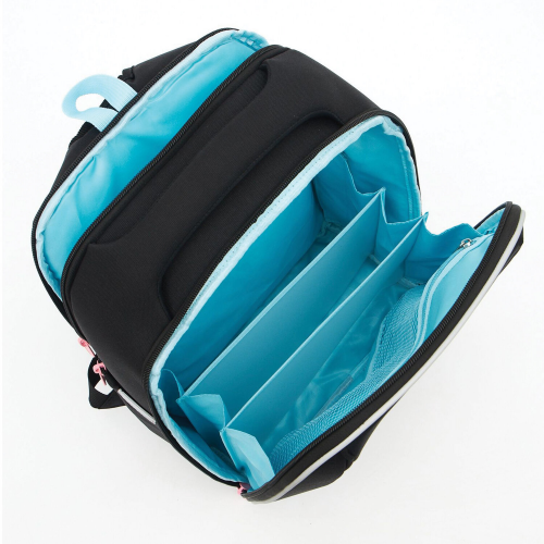 У ранца два отделения. Основное отделение разбито на три отсека: для книг, тетрадей и папок А4, есть карман из сетки на молнии. Дополнительное жесткое отделение не даст помяться ценным вещам. Для безопасности в темное время суток со всех сторон ранца нанесены светоотражающие элементы. За счет водо- и грязеотталкивающей пропитки ранец долго остается чистым. Если он все же чем-то испачкался, рекомендуется ручная стирка в холодной воде.