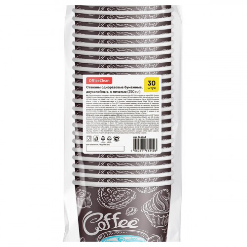 Стаканы одноразовые OfficeClean объемом 350 мл изготовлены из двухслойной ламинированной бумаги в стильном дизайне. Благодаря использованию в производстве натуральных материалов, стаканы являются безопасными для здоровья человека и его окружения. Они имеют достаточную плотность, чтобы дольше сохранить напиток горячим или холодным, при этом выдерживать температуру горячего кофе, шоколада или чая, не деформируются и не жгут руки.