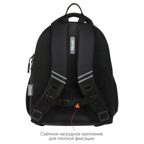 Рюкзак с жесткой анатомической спинкой Först F-JUNIOR размером 38*29*18 см и объёмом 20 литров с тремя отделениями, двумя карманами предназначен для детей среднего и старшего школьного возраста. В рюкзаке предусмотрены внутренние карманы, органайзер для канцтоваров и съемный карабин для ключей. Жесткая эргономичная спинка равномерно распределяет нагрузку без вреда для осанки. Спонжевые вставки, покрытые мягким вентиляционным материалом, обеспечивают комфорт, а также предотвращают запотевание спины ребенка. Нагрудное крепление плотно фиксирует рюкзак, не дает лямкам спадать с плеч во время движения. Высота крепления регулируется. Усиленное дно, плотная ручка и петля для подвешивания делают рюкзак максимально удобным.