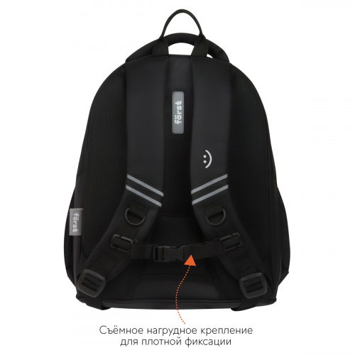 Рюкзак с жесткой анатомической спинкой Först F-JUNIOR размером 38*29*18 см и объёмом 20 литров с тремя отделениями, двумя карманами предназначен для детей среднего и старшего школьного возраста. В рюкзаке предусмотрены внутренние карманы, органайзер для канцтоваров и съемный карабин для ключей. Жесткая эргономичная спинка равномерно распределяет нагрузку без вреда для осанки. Спонжевые вставки, покрытые мягким вентиляционным материалом, обеспечивают комфорт, а также предотвращают запотевание спины ребенка. Нагрудное крепление плотно фиксирует рюкзак, не дает лямкам спадать с плеч во время движения. Высота крепления регулируется. Усиленное дно, плотная ручка и петля для подвешивания делают рюкзак максимально удобным.