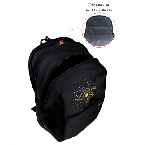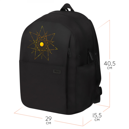 Рюкзак Först серии F-Spiritual Cosmic star — выбор активных молодых людей. В два больших отделения, три передних и два боковых кармана поместится всё необходимое. Размер — 40,5*29*15,5 см. Внутри есть мягкое отделение для планшета. Рюкзак сделан из высококачественного твила — износостойкого материала. Модель весит не более 470 граммов и вмещает до 18 литров. Он оснащён уплотнённой спинкой, S-образными лямками и ручкой-петлёй. Закрывается на пластиковую молнию. Благодаря минималистичному дизайну рюкзак органично сочетается с классическими, повседневными и спортивными образами.