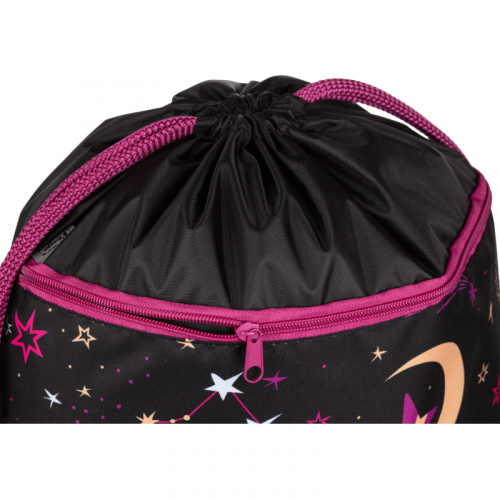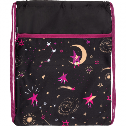 Мешок для обуви Комус Класс Звездное небо - вместительная и удобная в использовании емкость для хранения и переноса обувных изделий. Мешок размером 360х470 мм сделан из полиэстера и имеет два просторных отделения. Его дизайн выполнен в черном цвете с изображением звездного неба. Мешок предназначается для девочек. В нем удобно и практично переносить сменную обувь в учебные заведения или спортивные секции. Мешок надевается на спину с помощью двух наплечных лямок, комфортно ощущается и не занимает много пространства. Не включает элементы светоотражения. В рамках ребрендинга производится перевод данного артикула с ТМ №1School на ТМ Комус Класс с сохранением всех потребительских характеристик товара. На переходный период допускается поставка данной продукции в двух вариантах дизайна.