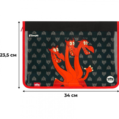 Папка для труда Комус Три Богатыря Горыныч А4 картон с 1 отделением на молнии Папка для труда формата А4 предназначена для хранения и переноса тетрадей и другой бумажной продукции. Папка выполнена из картона и имеет одно просторное отделение, которое застёгивается на молнию, обеспечивая сохранность содержимого. Внутри есть крепления для канцелярских принадлежностей. Дизайн папки выполнен в чёрном цвете с изображением Горыныча - персонажа из мультфильма 'Три Богатыря'. Папка станет ярким и стильным дополнением школьного набора, а также защитит учебные материалы от преждевременного износа.