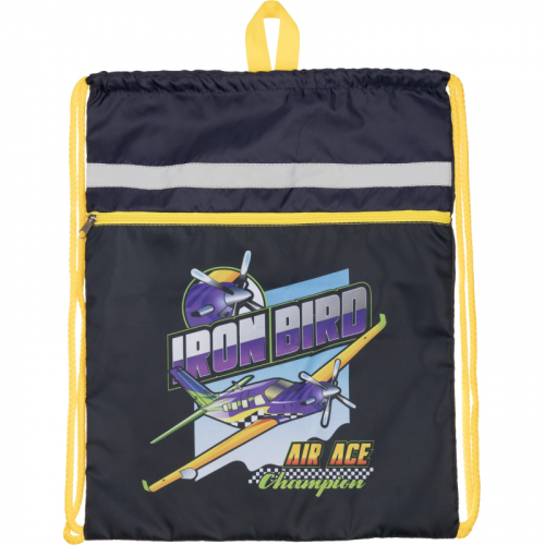 Мешок для обуви "Комус Класс" Iron Bird - эргономичная сумка для хранения и переноса обувных изделий. Мешок размером 360x470 мм сделан из материала оксфорд и имеет два просторных отделения. Его дизайн выполнен в черном и желтом цветах с изображением самолета Iron Bird. Дизайн сумки предусматривает элементы светоотражения. В нем удобно и практично переносить сменную обувь в учебные заведения или спортивные секции. Сумка надевается на спину с помощью двух наплечных лямок, комфортно ощущается и не занимает много пространства.