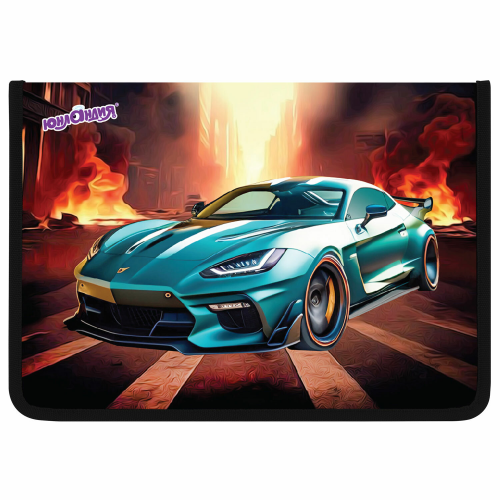 Папка для труда на молнии ЮНЛАНДИЯ А4, 1 отделение, откидная планка, органайзер, "Fire car", 272223