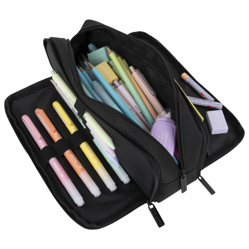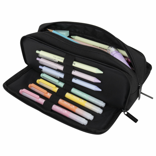 Пенал BRAUBERG MOMENTS имеет одно вместительное отделение с 2 боковыми откидными планками, что позволяет разместить до 70 предметов. Одна откидная планка имеет универсальный органайзер для крупной канцелярии, а вторая - компактные сетчатые карманы, чтобы разместить мелкие часто используемые принадлежности.