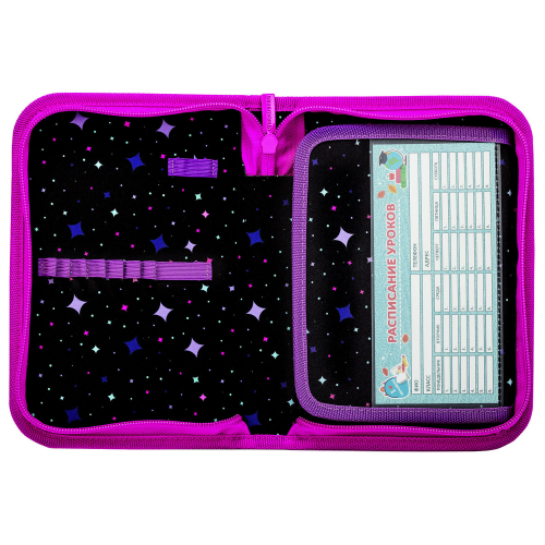 Пенал имеет стандартный размер 21х14 см, что позволяет легко размещать его в ранце или рюкзаке, сумке. Хорошая наполняемость пенала дает возможность держать все необходимые для уроков канцтовары в порядке, в одном месте. Внутри пенала имеется вкладыш для расписания уроков.
